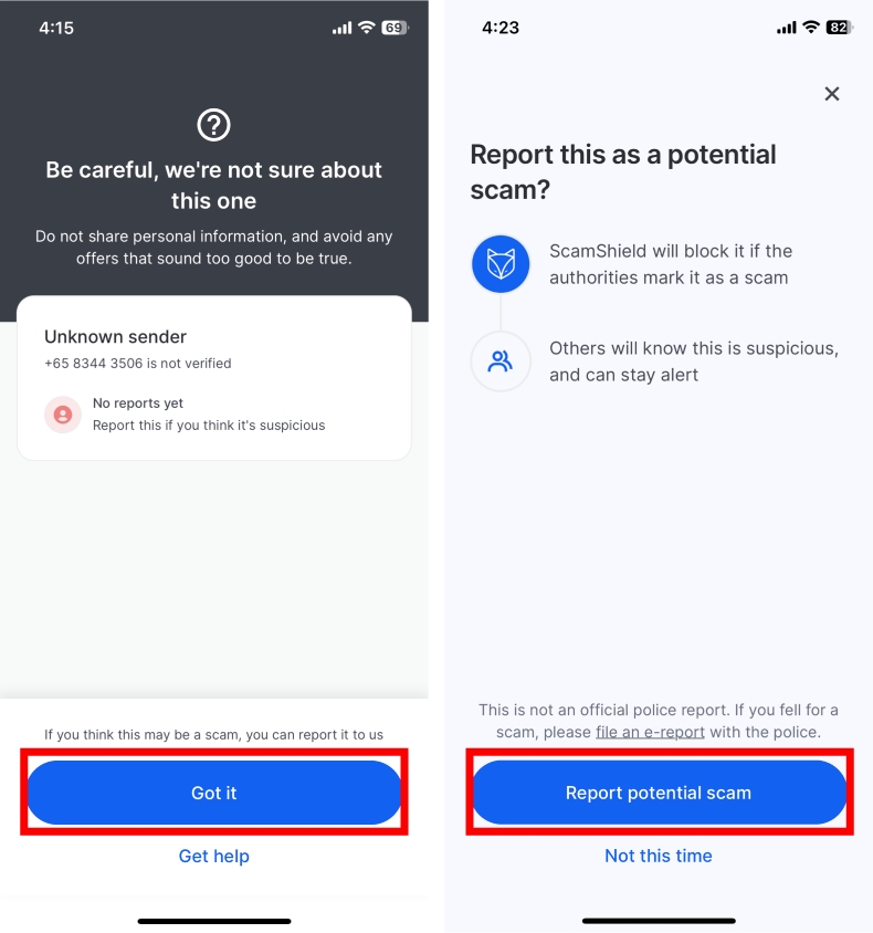 Following this, ScamShield will report this potential scam for you.